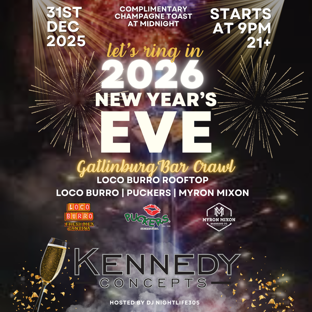 Come bring in the New Years with your favorite Gatlinburg Annual NYE Party! Watch the ball drop from Loco Burro’s rooftop or Puckers and dance the night away with your favorite DJ’s at our locations!